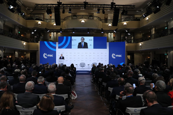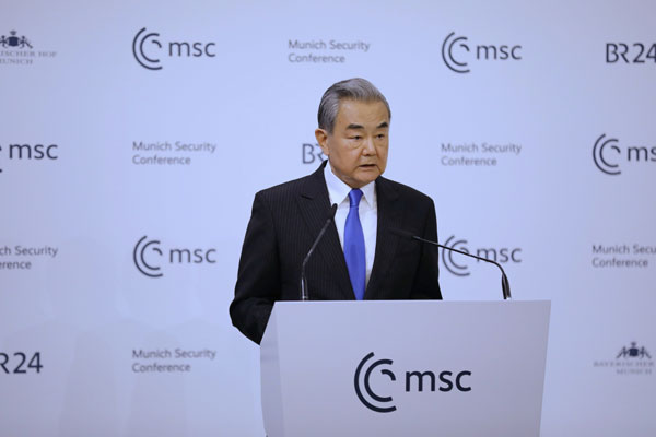 当地时间2026年2月14日,中共中央政治局委员、外交部长王毅出席慕尼黑安全会议,在“中国专场”发表题为《携手校准历史巨轮的正确航向》的演讲。